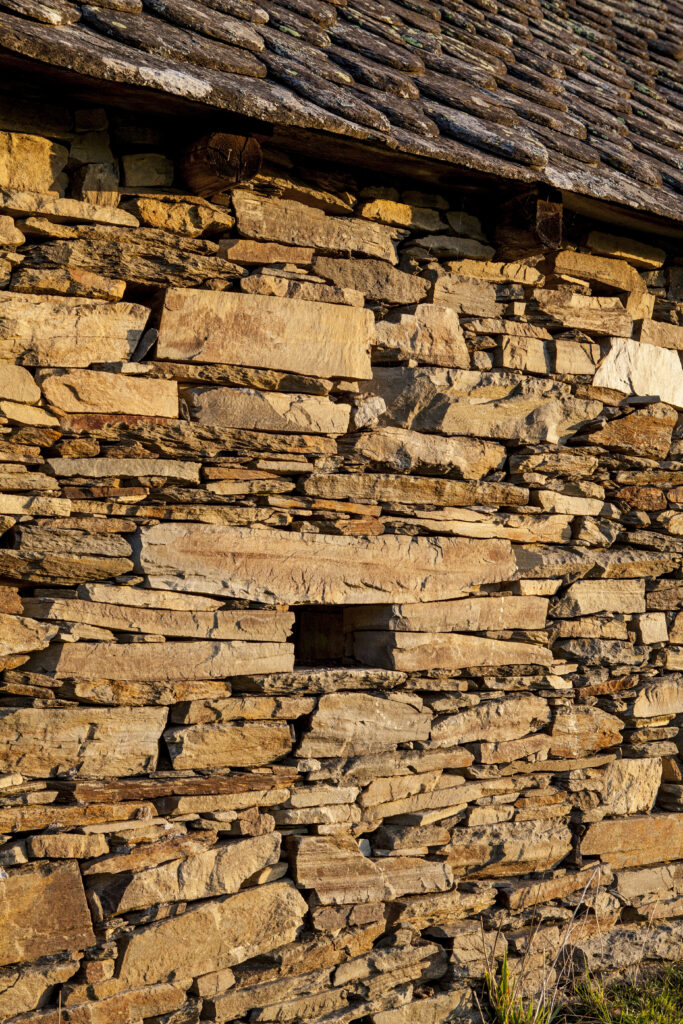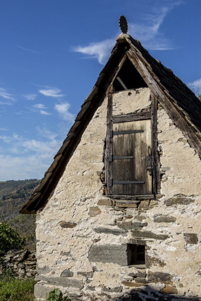 A Valon, les maisons du village, les granges, les fours à pain, les cabanes, les loges à cochons et les séchoirs à châtaignes : tout est bâti en pierre sèche – en schiste.