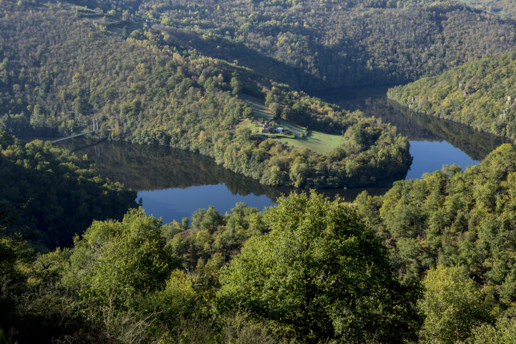 Admirez en balade les « coultades » faites de murets et de terrasses qui cascadent depuis Valon vers l’eau de la Truyère.