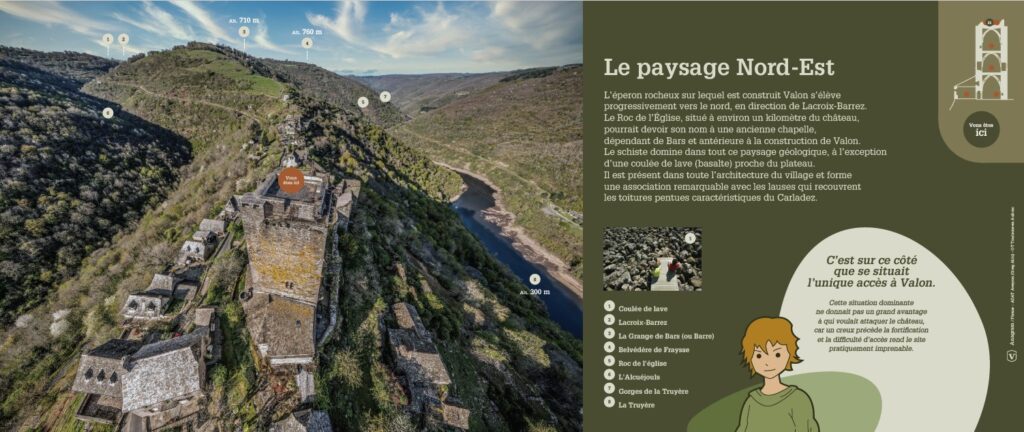 Les points de vue depuis la place du village de Valon sont magnifiques : cascade du saut du chien, Truyère, château et vue d’ensemble du village.