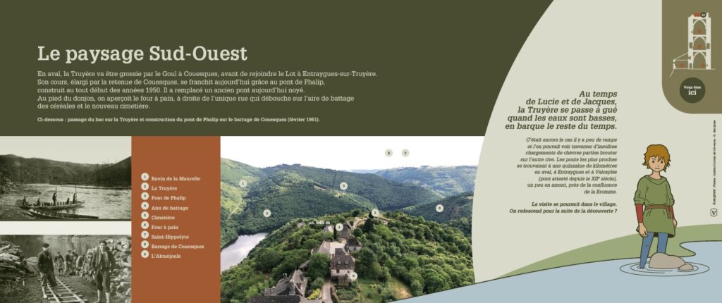 valon village médiéval Gorge de la truyère sépia au temps des fruitier scénographie sentier des coultades