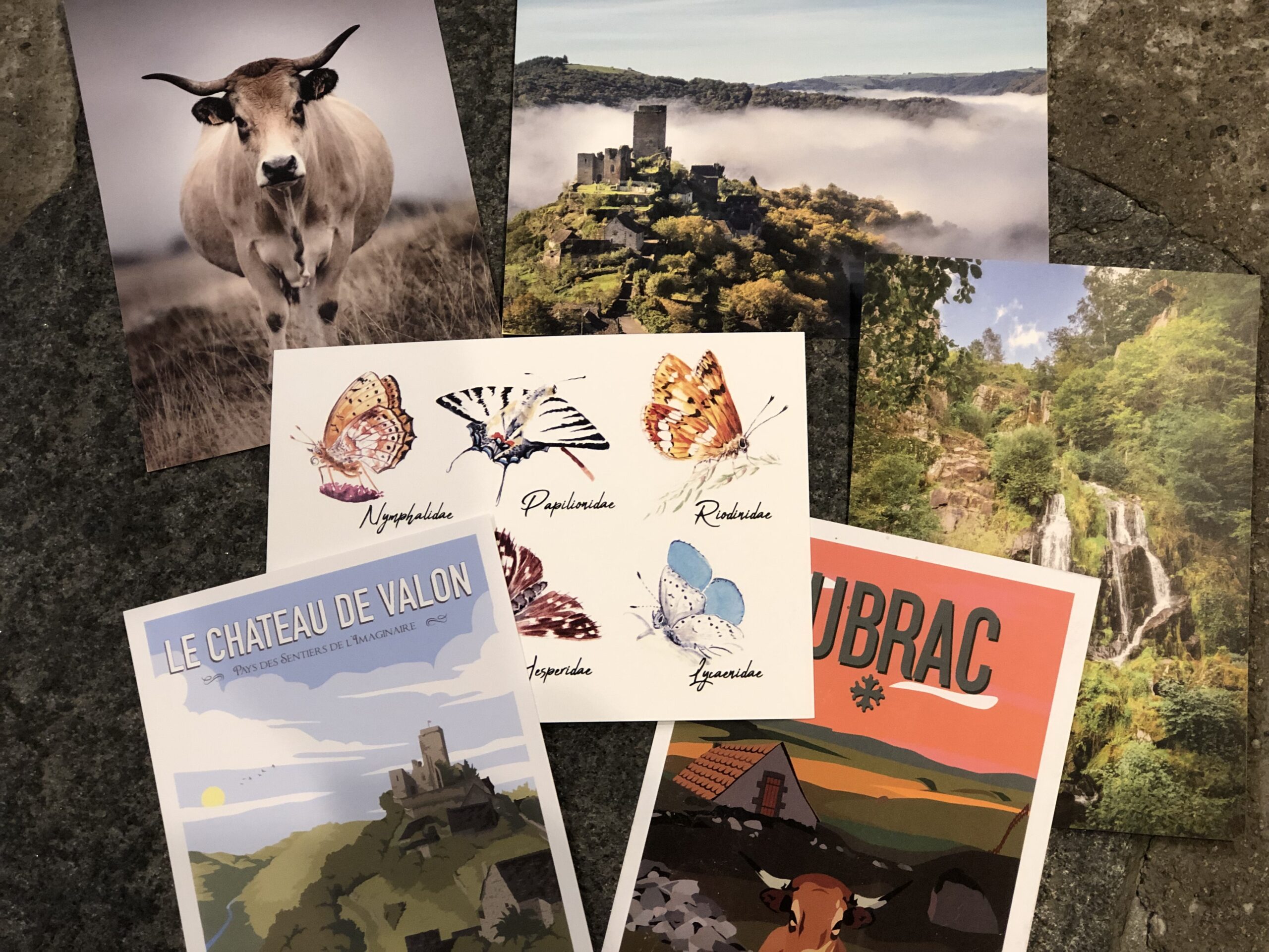 - les cartes postales de nos artistes locaux : Lozère sauvage – Benoît Colomb – Photographe / Lisa Chauvin – Illustratrice et peintre naturaliste / Fenestrou – Illustrateur rétro / La Hache Illustration – Hélène Lemouzy – Architecte et illustratrice.